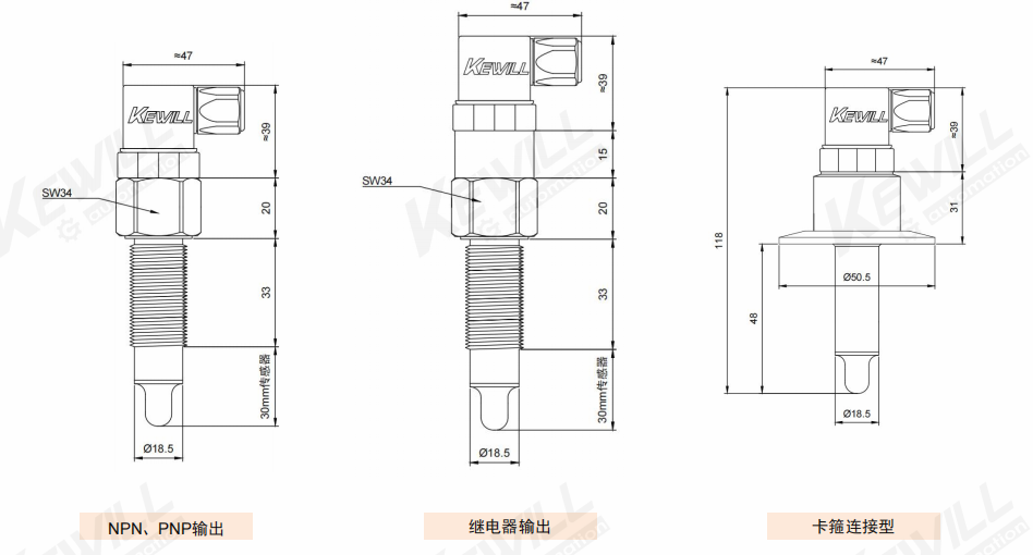 通過電場確定傳感器末端的電容值和介質(zhì)的介電常數(shù)值。由于空氣的介電常數(shù)值不同于水基液的介電常數(shù)值,能夠被識別兩種狀態(tài):被覆蓋和未被覆蓋。常態(tài)下指示燈熄滅表示未被覆蓋,指示燈常亮表示被覆蓋,并進(jìn)行開關(guān)切換。