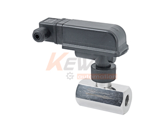 流量開關(guān)包含一個葉片系統(tǒng)(1)在它的另一端連接著一個永久磁鐵(2)在這個磁鐵的上邊是一個簧片接觸器(3),這一部分置于液體的外部。另外還有一個磁鐵(4)它的磁極與前一個磁體相同,產(chǎn)生一定的力將開關(guān)復(fù)位到無流量的位置。當液體沖向擋片時,擋片擺動,改變磁鐵(2)與簧片接觸器(3)的相對位置,激發(fā)了接觸器,一旦液流被中斷,葉片回到起始位置,又一次激發(fā)接觸器。兩磁鐵的相互排斥了磁鐵復(fù)位所需要的力。改用磁力來替代一般的彈簧部件,這樣來達到穩(wěn)定耐久使用以及對壓力峰值不再敏感。