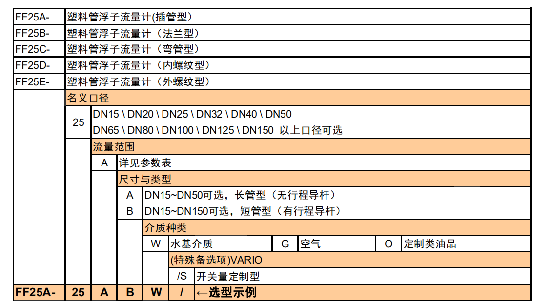 FF25 系列流量計共有兩大類型,分為長管型和短管型,其區(qū)別在于長管型流量計中間無導(dǎo)桿,所以它的精度要低于有導(dǎo)桿的短管型;因此系列流量計浮子均采用塑料外殼,所以它具有優(yōu)良的抗酸堿耐腐蝕的性能。