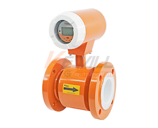 測量流量時(shí),導(dǎo)電性液體以速度V流過垂直于流量方向的磁場,導(dǎo)電性液體的流動(dòng)感應(yīng)出一個(gè)與平均流速成正比的電壓,其感應(yīng)電壓信號(hào)通過二個(gè)或二個(gè)以上與液體直接接觸的感應(yīng)電極檢出,并通過電纜送至轉(zhuǎn)換器通過其智能化處理,實(shí)現(xiàn)流體瞬時(shí)流量、積累流量的顯示及流量數(shù)據(jù)與控制系統(tǒng)之間的通訊。測量管內(nèi)無活動(dòng)及阻流部件,因此幾乎沒有壓力損失,并且有很高的可靠性。